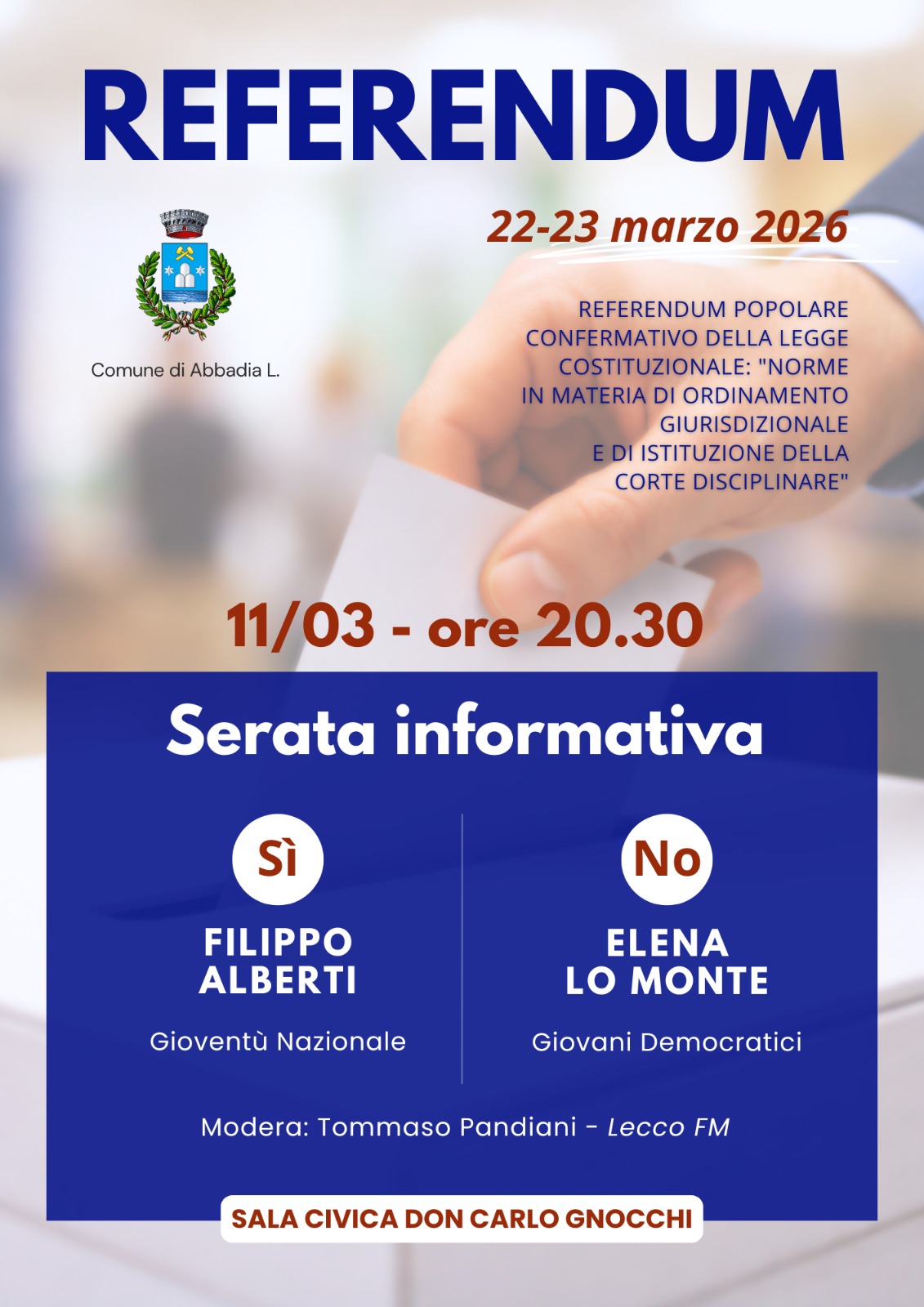 Serata informativa sul referendum costituzionale del 22 e 23 marzo 2026: